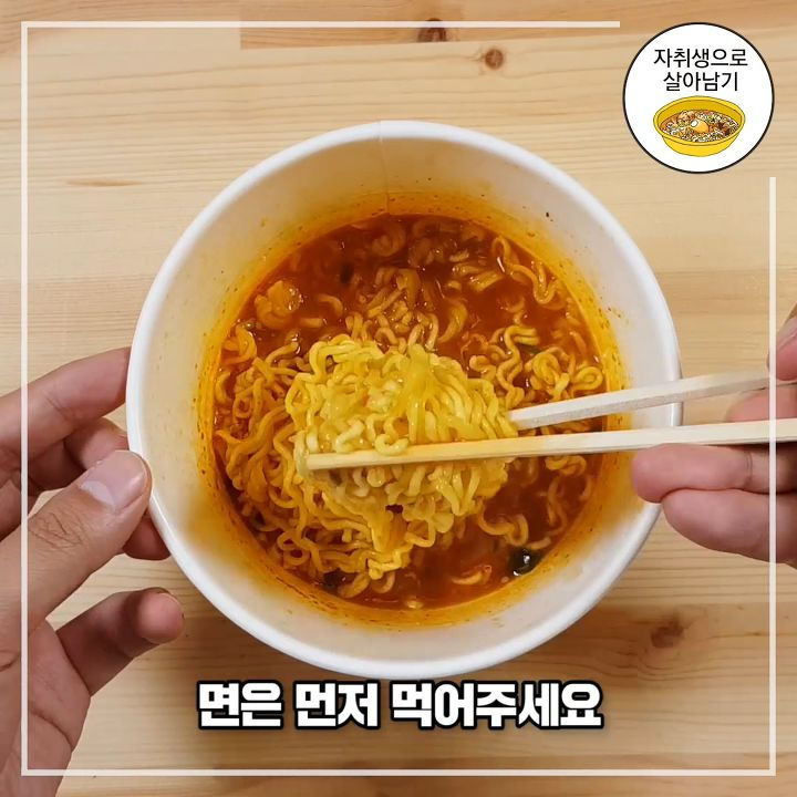 カップラーメンが完成したら、いつも通りラーメンを先に食べます!