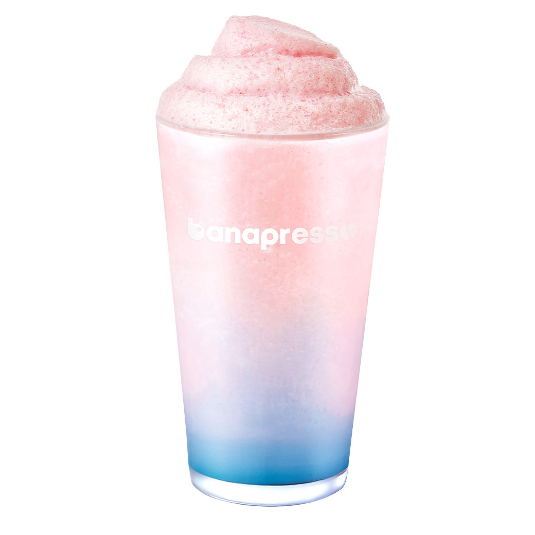 イチゴミルクセーキにブルーソーダを加え、神秘的なビジュアルと甘い味が調和するドリンク♡