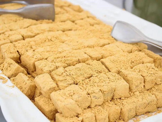 きな粉をまぶした韓国の餅。もちもちした食感と香ばしさが特徴。